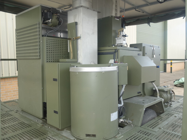 A soundproof liquid cooled diesel generator of 7KVA, 1500 RPM with 100 litre fuel tank feeding both the generator and the burners.