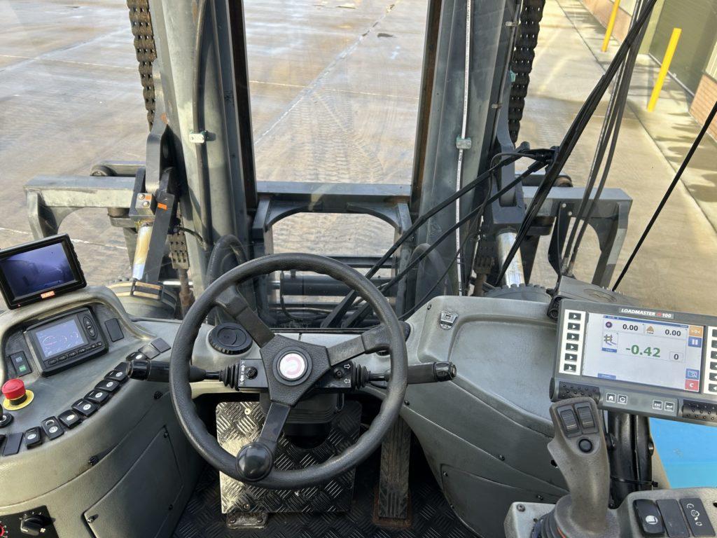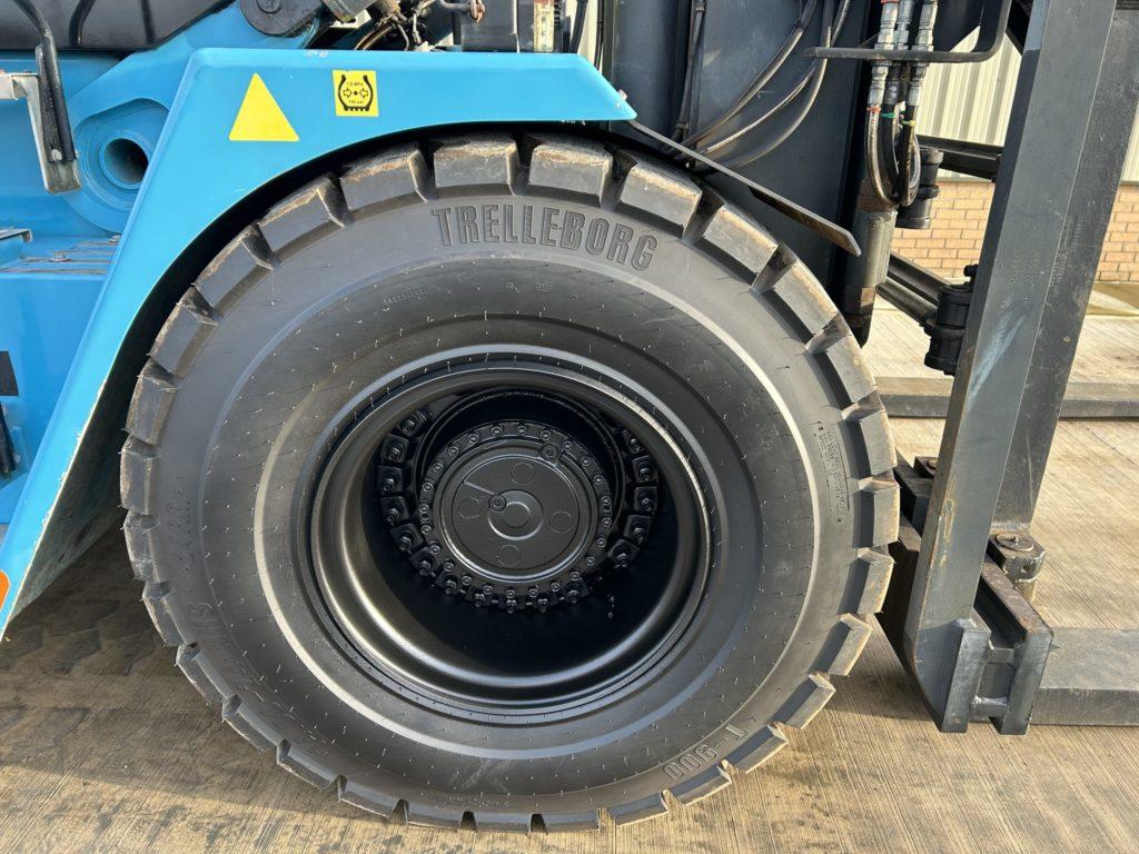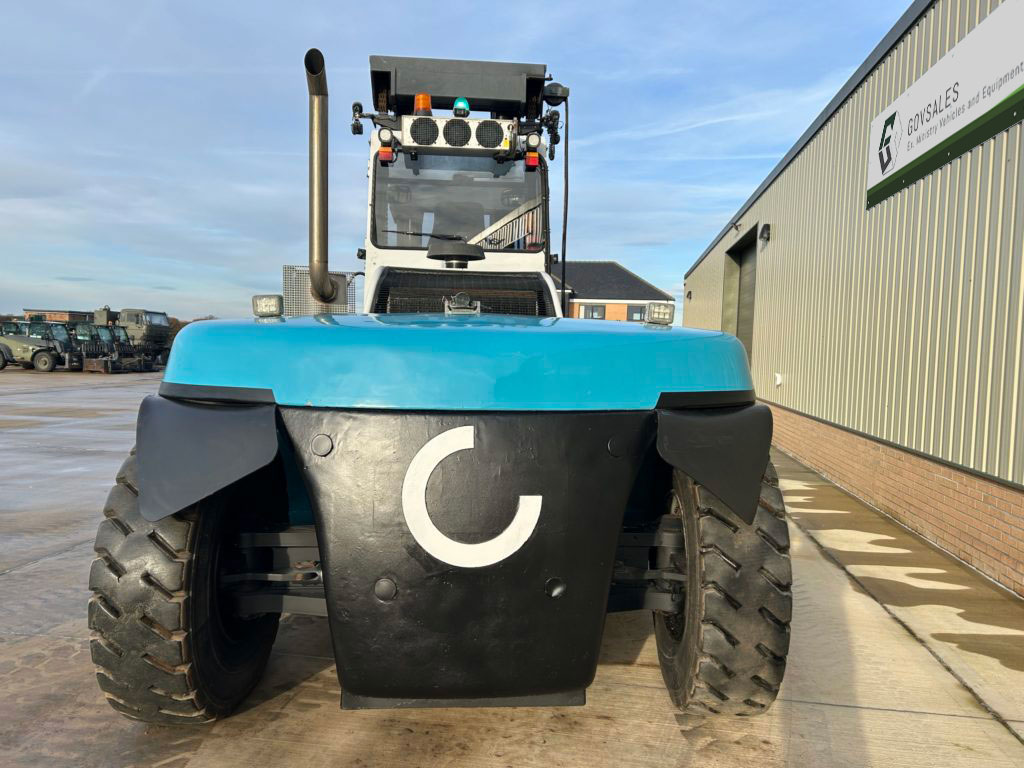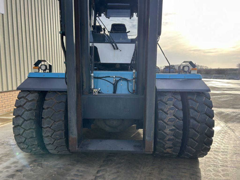 Excellent condition, tyres approx 90% good PLEASE NOTE THAT THIS MACHINE IS CONFIGURED FOR CONTAINER LIFTING AND HANDLING WITH THE FORKS HAVING BEEN SECURED AT A SET DISTANCE TO MEET THE STANDARD FORK TYNE HOLE SPACING ON A STANDARD CONTAINER